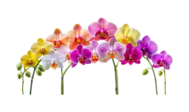 An Assortment of Colorful Orchid Flowers Displayed on a White Background