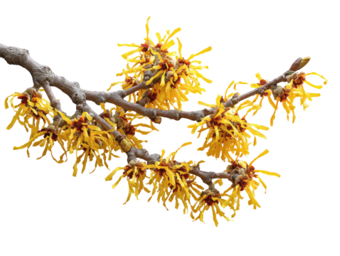 A delicate branch adorned with yellow buds against a stark white background. symbolizing the transition of seasons. ideal for nature-themed projects or botanical studies