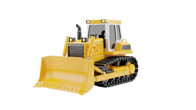 Realistic 3d rendering of a yellow tracked excavator construction machine isolated on transparent background for industrial design concept