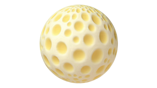 A textured creamy sphere with numerous yellow circular holes, resembling a modern artistic interpretation of Swiss cheese or a unique abstract object. background removed