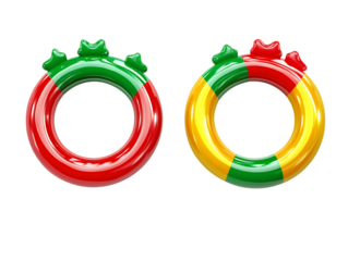 Two colorful inflatable rings with star shapes on top isolated on transparent background