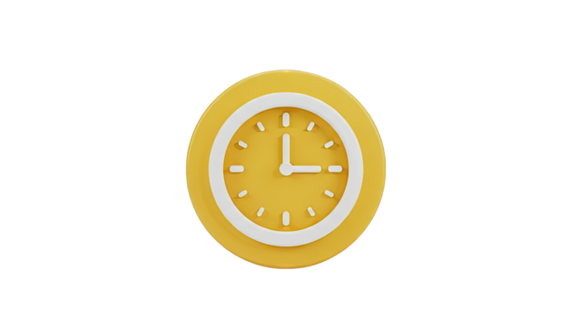 Yellow clock illustration on transparent background for timing concepts