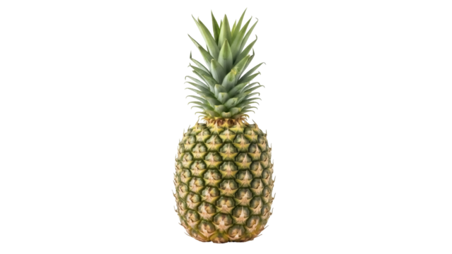 Ripe pineapple bursts, showcasing juice splash with crown and sliced piece