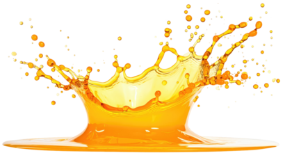 Yellow liquid splash crown shape with droplets on black background image, Isolated On White Background, Png Transparent