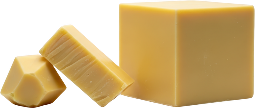 A close-up shot of a perfect butter brick with a warm yellow color against a transparent background. A culinary delight