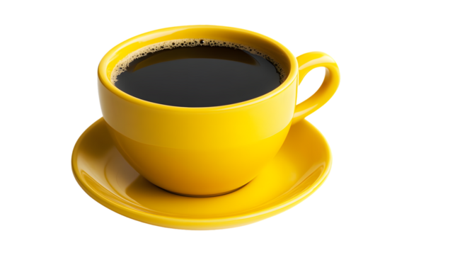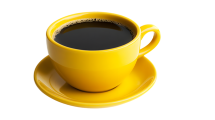 A yellow cup of coffee isolated on white or transparent background
