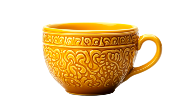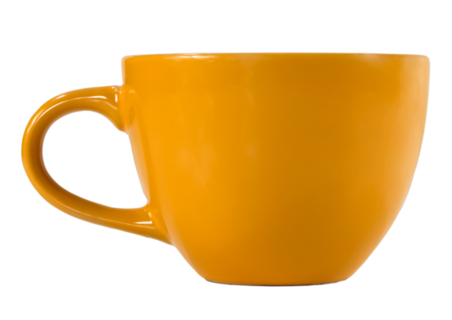 Yellow cup isolated on transparent background, PNG style, ideal for graphic design and digital art projects