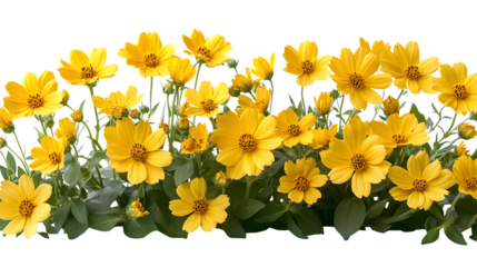 Three Yellow Daisies Aligned in a Row, Minimalist Composition, Isolated on Transparent Background