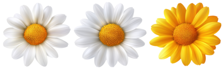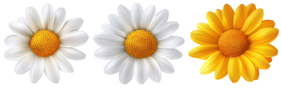 Transparent flat stylized daisy illustration with white petals