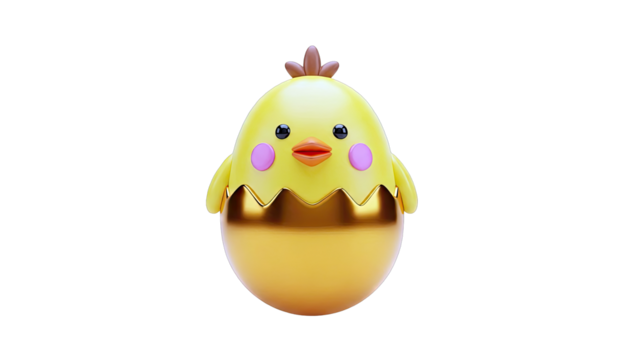 Cute 3D Chick Emerging from Golden Egg