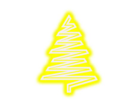 Bright yellow neon stylized Christmas tree icon with a zigzag white interior design element
