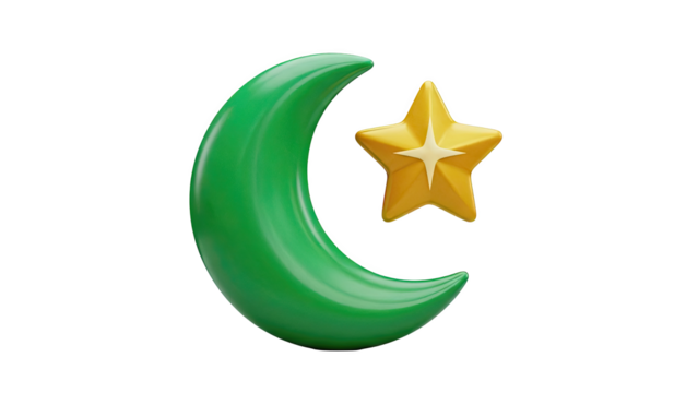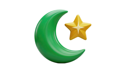 3D Green crescent moon and yellow star icon on transparent background