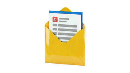 Digital envelope icon on transparent background illustrating email concept