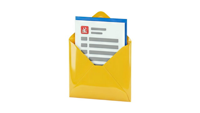 Digital envelope with letter on transparent background