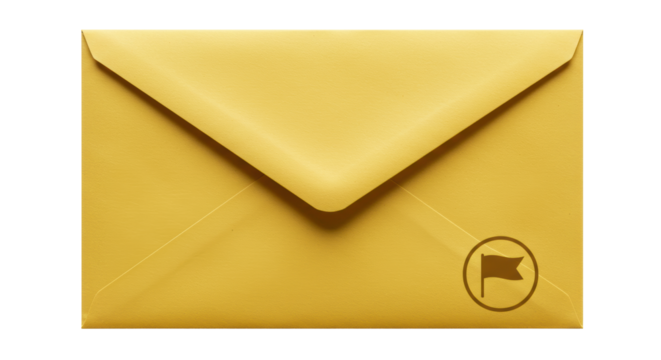 a closed yellow envelope resting on a white background symbolizing communication correspondence or a message waiting to be delivered