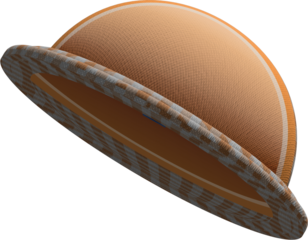 Stylized cartoon sun hat with bright yellow band on transparent background
