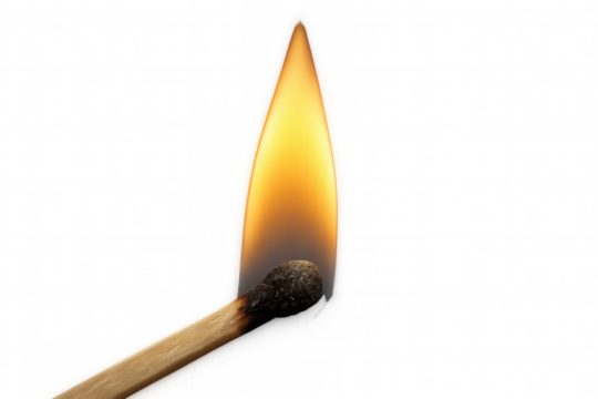 Wooden matchstick burning with a bright yellow flame, symbolizing heat, energy, and ignition