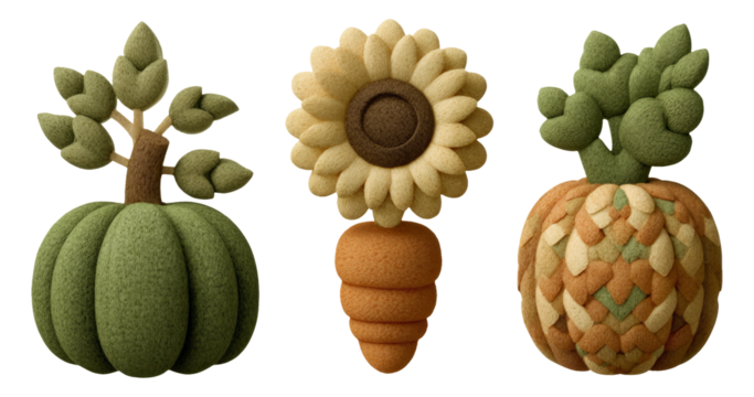 Colorful Textured Fruits and Flowers in Soft Artistic Style on Transparent Background
