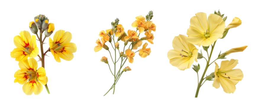 Yellow flowers butter eggs toadflax isolated on transparent background, growth beauty health wellness