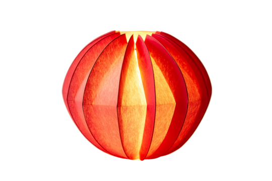 Brightly lit red and yellow oval object isolated on transparent background
