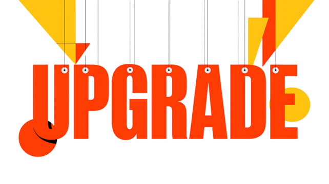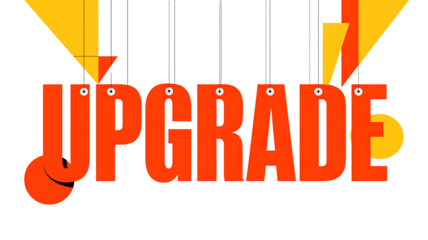 Orange UPGRADE Text Hanging with Geometric Shapes upgrade word