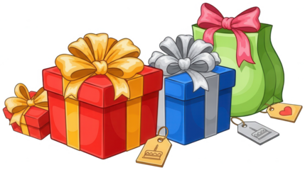 Red gift tag illustration on transparent background