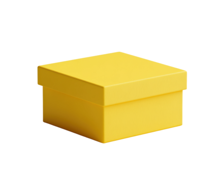 Unboxing a bright yellow gift box product minimalist design isolated on transparent background