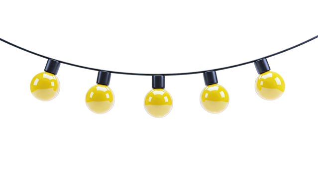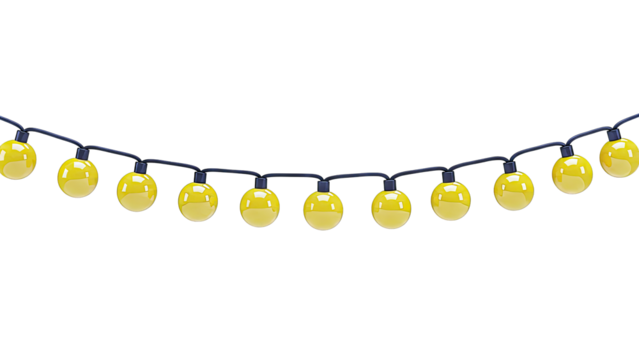 String of warm yellow globe lights isolated on white background