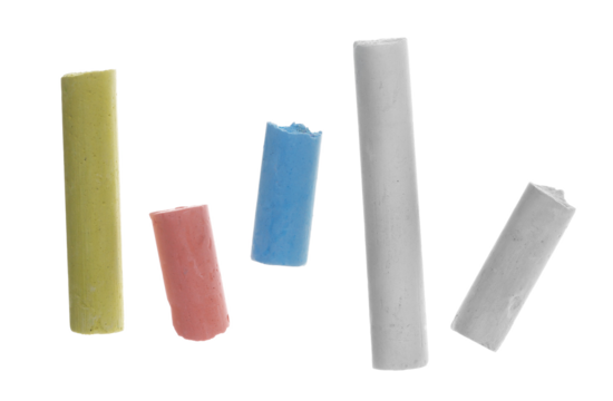 Set colorful piece chalks isolated on background, clipping path
