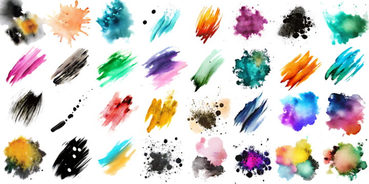 Collection of colorfull brush strokes on a white background.AI GENERATED