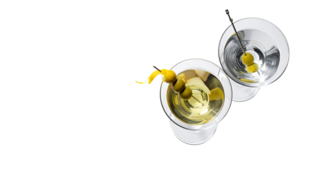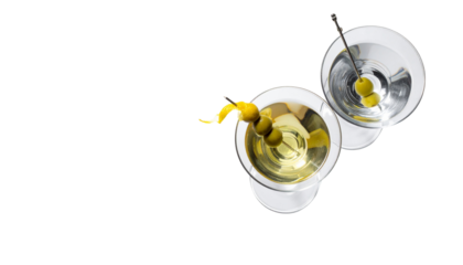 Elegant Martini Glass with Olive Duo isolated on transparent background