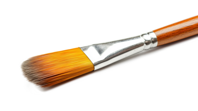 A paintbrush with a yellow handle and a silver tip, isolated on a transparent background