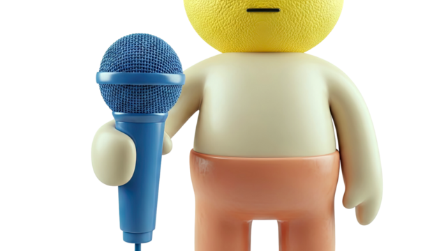 Isolated person in green with yellow head, standing attentively and alone, three-dimensional