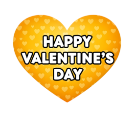 Yellow Heart With Happy Valentines Day Text And Hearts isolated on transparent background