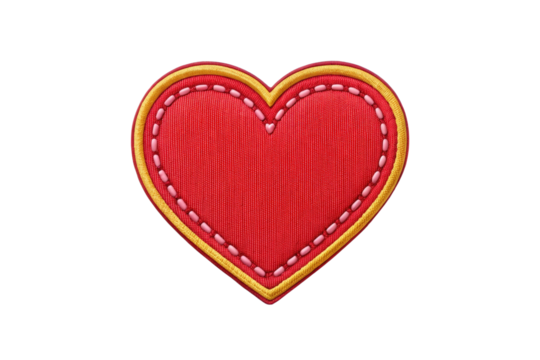 Bright Red Heart Patch with Yellow Stitching on a Transparent Background for Craft Projects