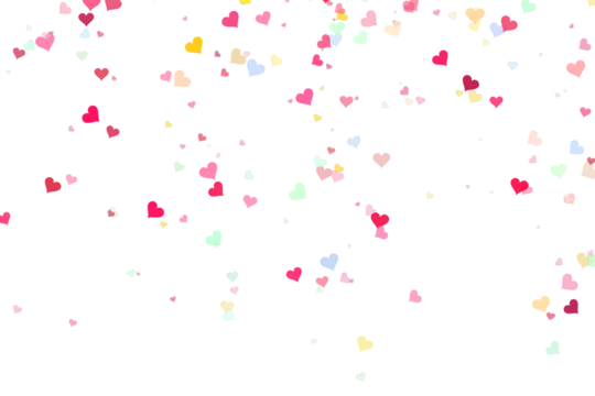 Vibrant and colorful heart confetti falling against a transparent background for celebration