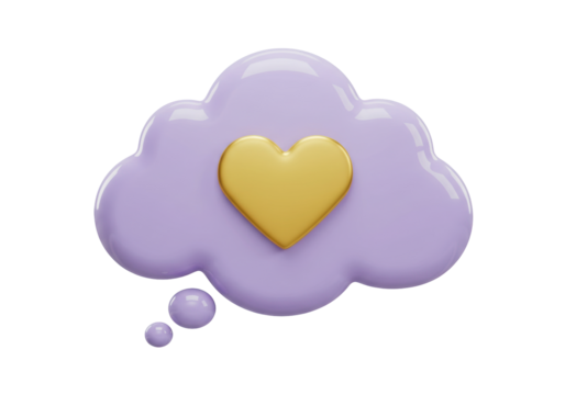 Transparent background of a glossy yellow heart shaped object with smooth surface.