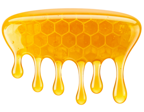 Golden Honeycomb Block with Thick Honey Drips, Close-Up Front View, isolated on transparent background PNG