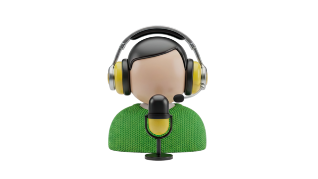 3D Cartoon Character with Headphones and Microphone