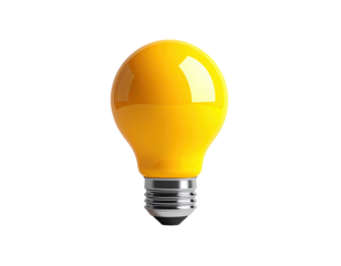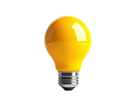 A vibrant yellow lightbulb with a metallic base against a stark black background