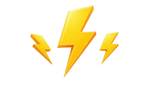Vibrant yellow lightning bolt icon on transparent background