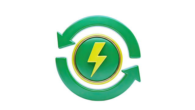 Green Recycling Arrows Around Yellow Lightning Bolt Symbol