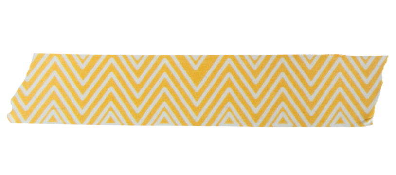 Ripped torn striped yellow adhesive tape on transparent background, washi tape design element