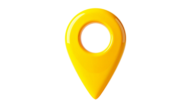 Yellow location pin marking position on transparent background, perfect for indicating places on maps or highlighting specific locations