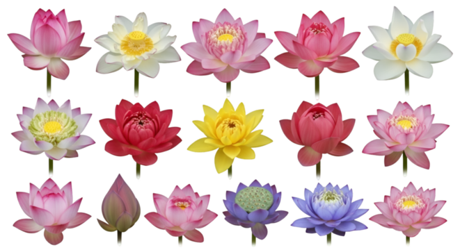 Artificial lotus flower isolated on transparent background with vibrant colors