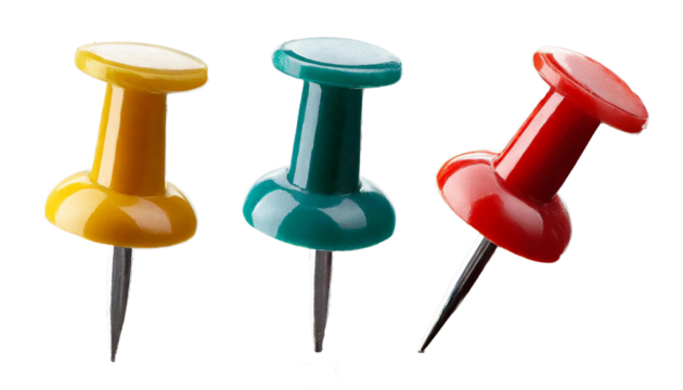 Yellow push pin isolated on transparent background, highlighting office organization and stationery essentials