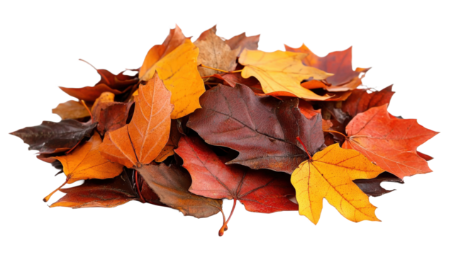 Single vibrant orange and yellow maple leaf isolated on transparent background, representing autumn season and nature