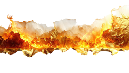 Golden framed artwork of abstract yellow mountains and a sun, isolated on transparent background