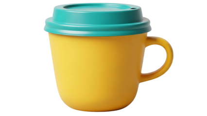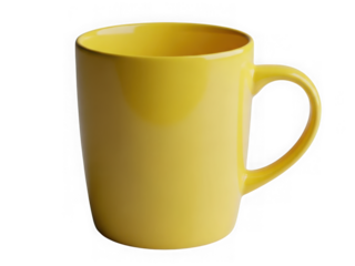 Close-up of a hand in yellow sweater holding a matching yellow mug on transparent background, perfect for branding, advertising, and lifestyle concepts.