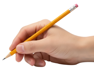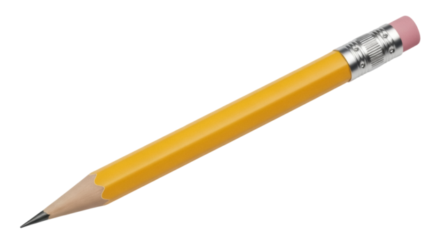 Yellow number two pencil isolated PNG on transparent background, classic writing instrument for school and office use